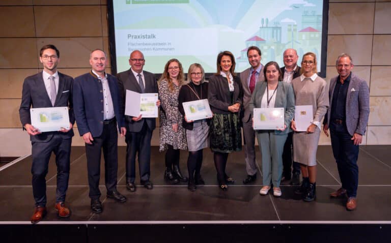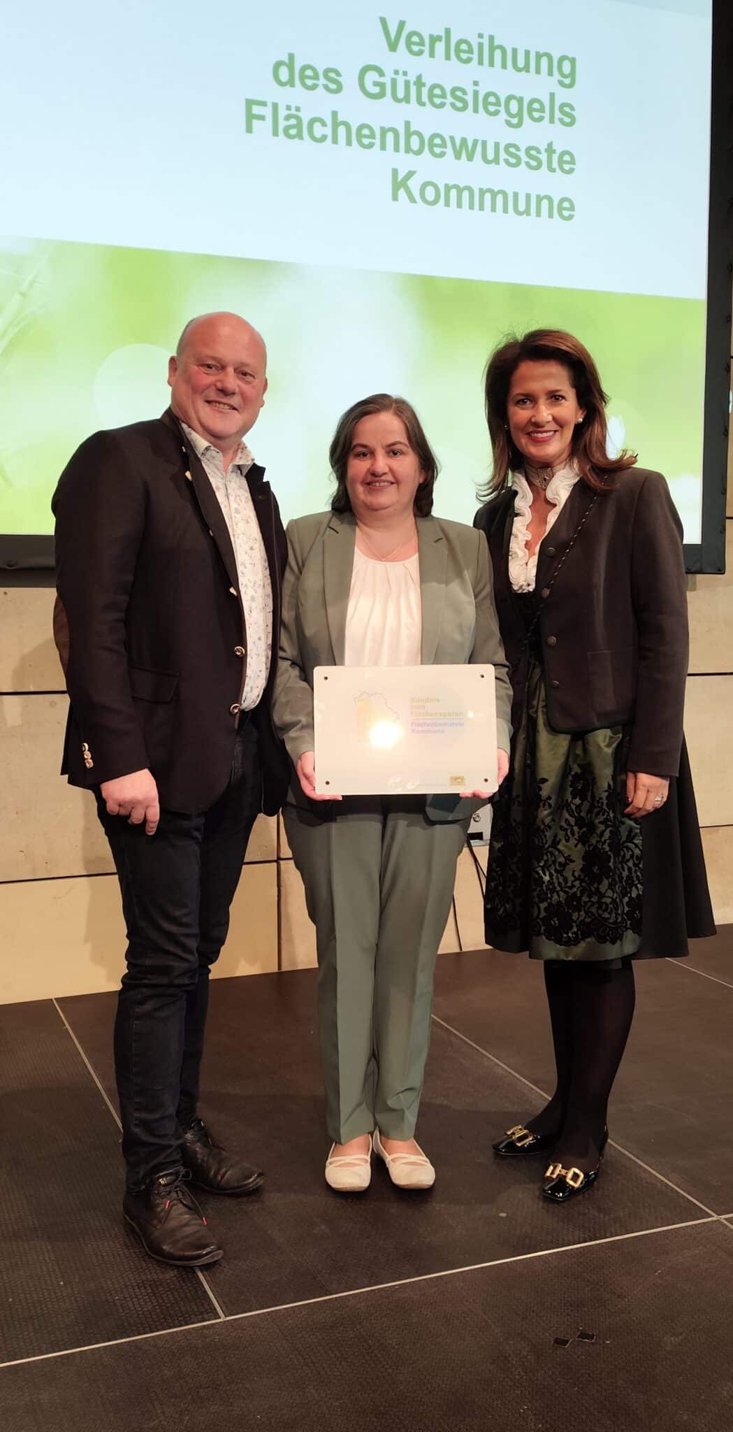 Das staatliche Gütesiegel „Flächenbewusste Kommune“ zeichnet Gemeinden in Bayern aus, die sich für eine nachhaltige Flächennutzung einsetzen und den Flächenverbrauch reduzieren. Statt neue Flächen zu bebauen, ist das Ziel, bestehende Flächen zu entsiegeln.
