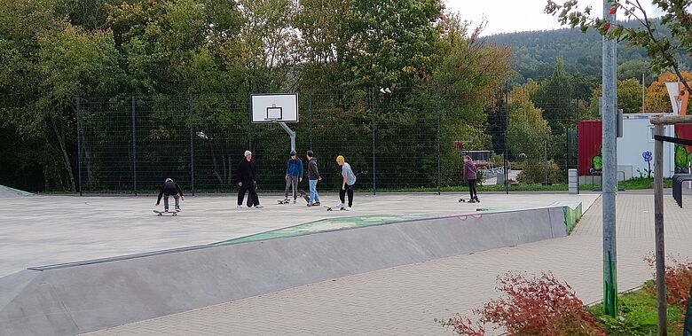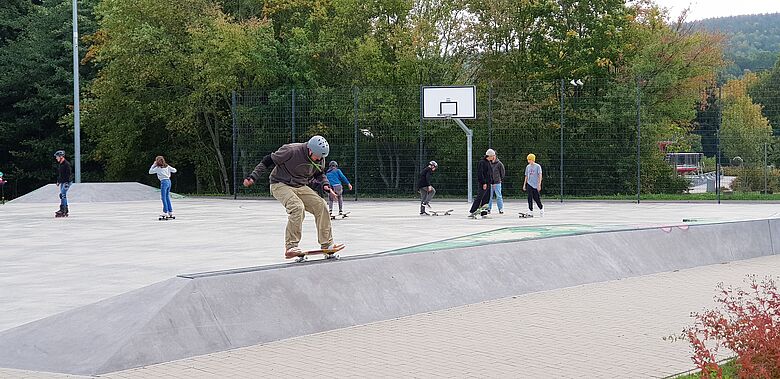 Die Teilnehmerinnen und Teilnehmer hatten die Gelegenheit, im Pumptrack-Bereich gemeinsam Erfahrungen zu sammeln und im Skatepark verschiedene Sprünge vom einfachen Ollie-Sprung bis zum Kickflip zu üben.
