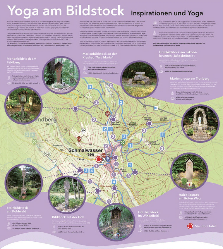 Neben neuen Wegweisern und einer großen Übersichtstafel bieten jetzt acht Stationen kleine Yoga-Impulse – kostenlos, niederschwellig und mitten in der Natur.